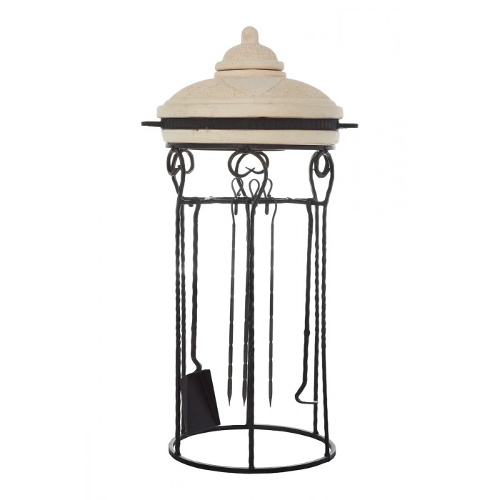 В комплектации тандыр "Дастархан NEW" имеется подставка, которая необходима чтобы поставить на нее крышку тандыра после приготовления блюд или загрузке новой партии. Её же можно использовать как стойку для совка и кочерги. Все необходимо всегда будет у Вас под рукой!