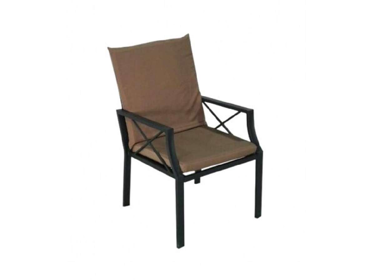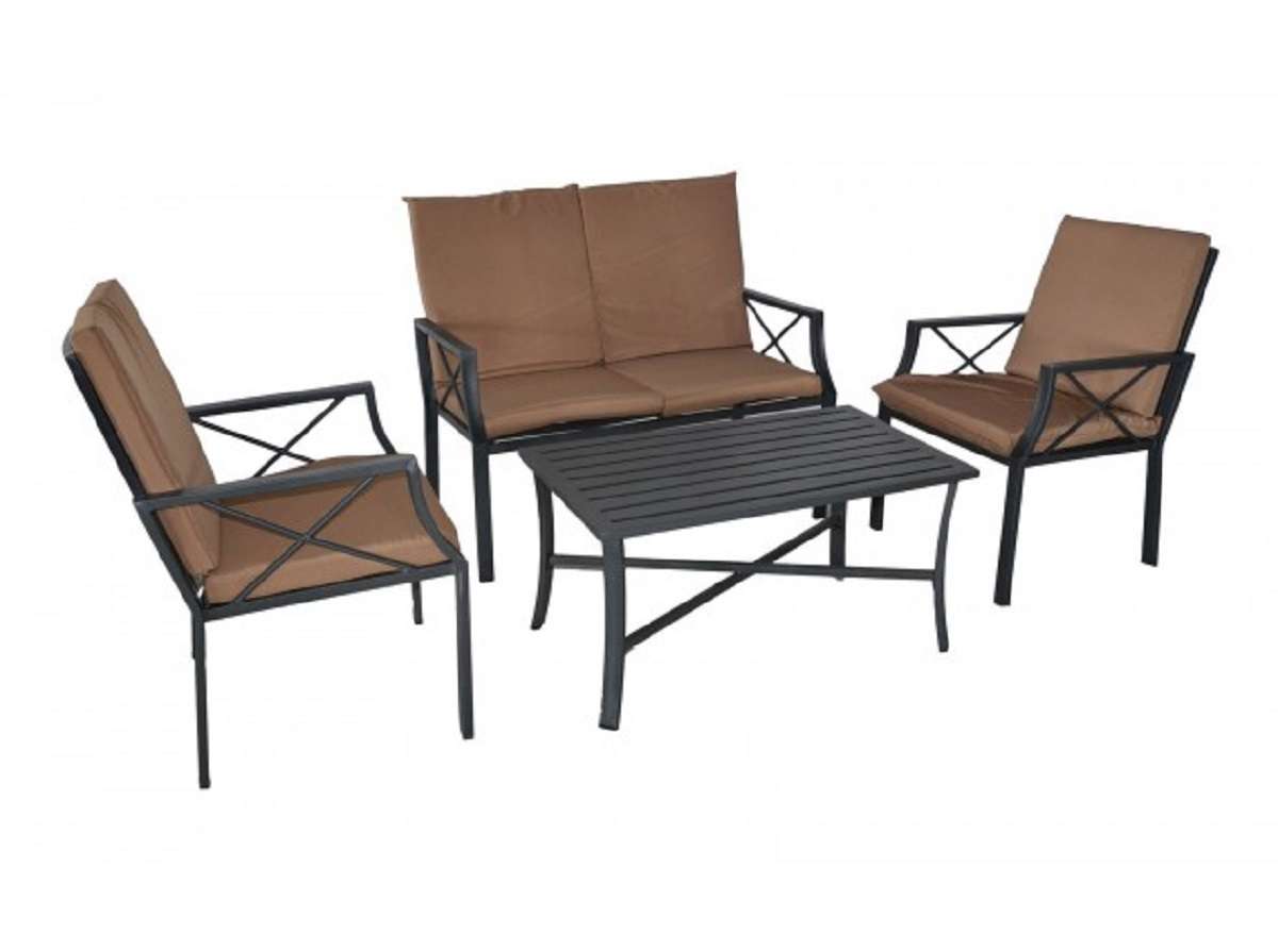 Кресла и диван комплектуются мягкими подушками толщиной 80 мм. Для изготовления каркаса используется стальная рама черного цвета с порошковым покрытием. Вы можете оставлять мебель на улице на весь летний сезон и с ней ничего не случится. Кроме того, в комплекте к этому набору есть водонепроницаемый чехол, который защитит мебель от дождя.