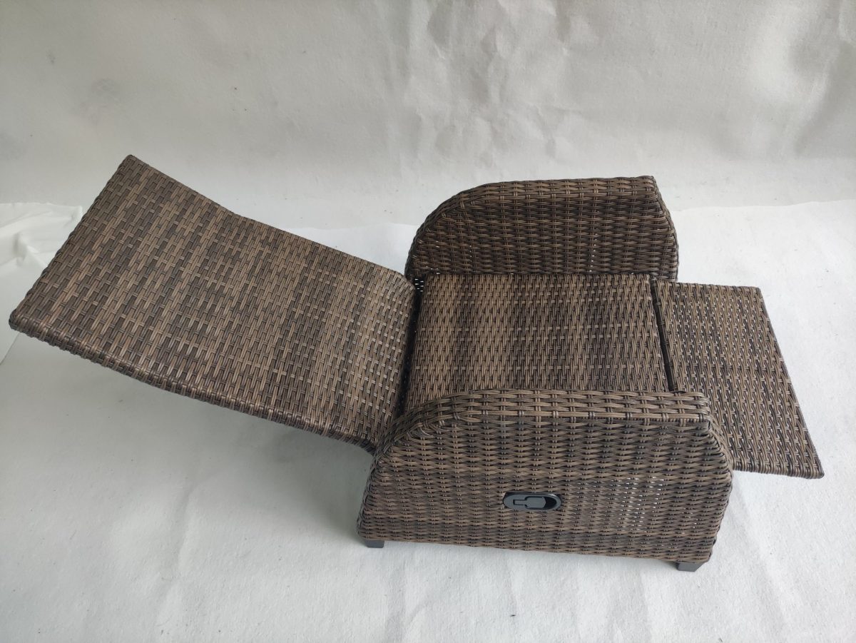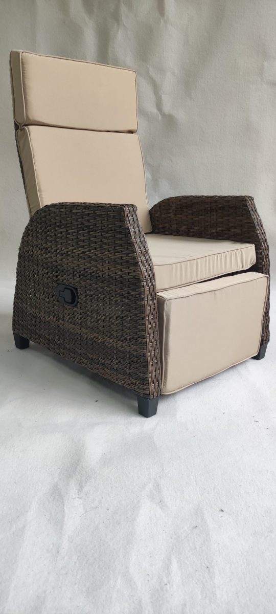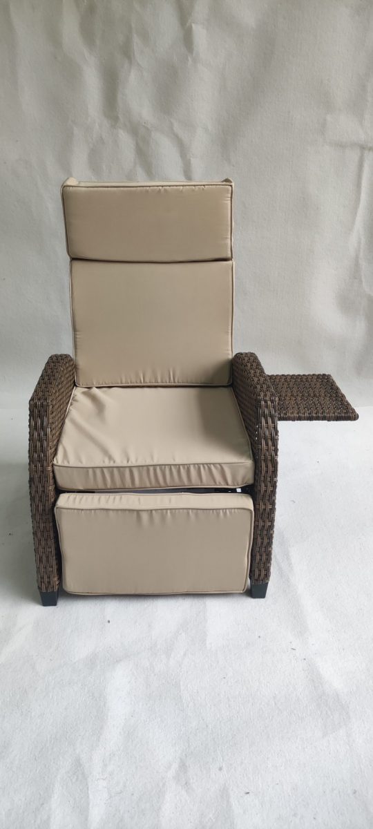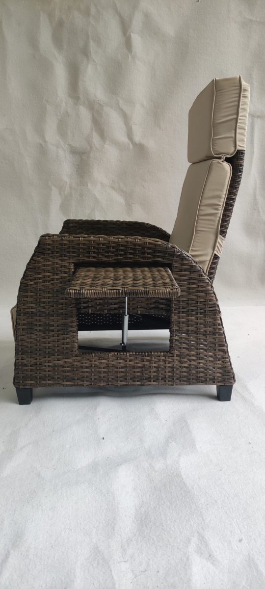 Кресло реклайнер из ротанга Гранд Патио "Grand Patio" brown имеет удобную высокую спинку, водо-грязестойкий матрас и откидной столик из подлокотника. Кресло может фиксироваться в трех положениях: исходное-сидя, откинувшись и полулежа. Кресло имеет стальной каркас и стальной механизм. -