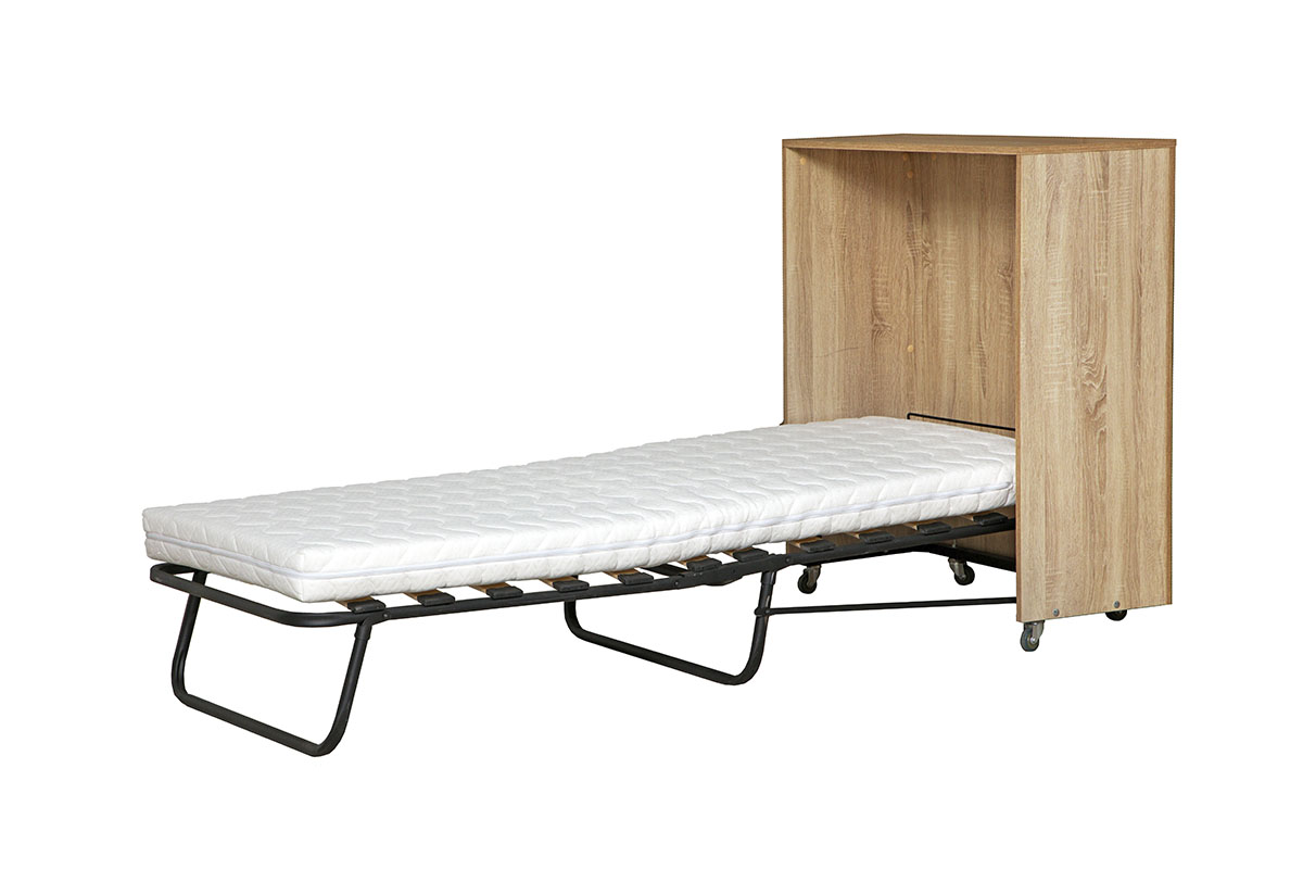 Кровать одинарная 42.22 Соната отличный вариант для размещения гостя. Ортопедическое основание раскладушки Соната 42.22 позволит отдыхать с комфортом. Корпус тумбы выполнен в цвете Дуб Сонома.
