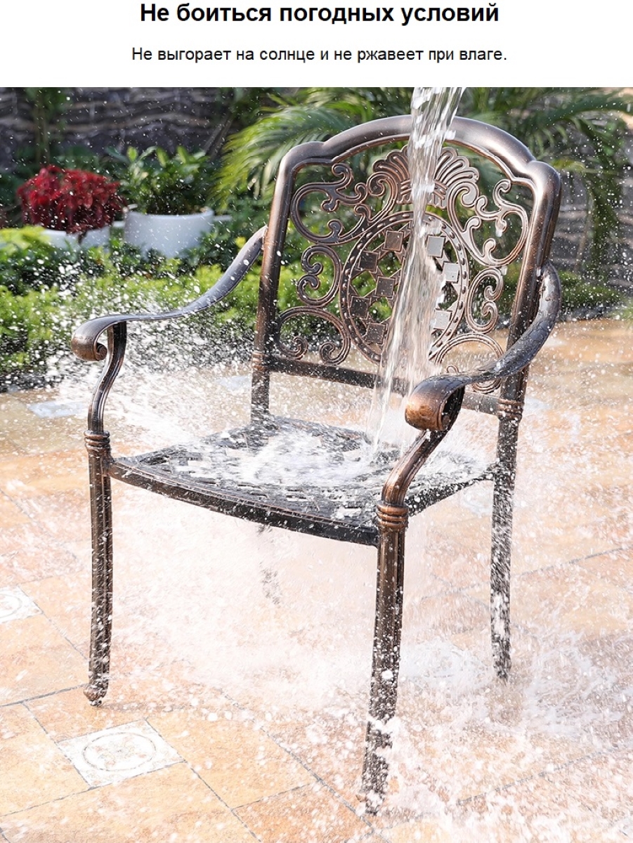 Изготовленное в стиле кованой мебели из прочного и легкого алюминиевого сплава, кресло имеет ряд преимуществ перед металлической и чугунной мебелью.