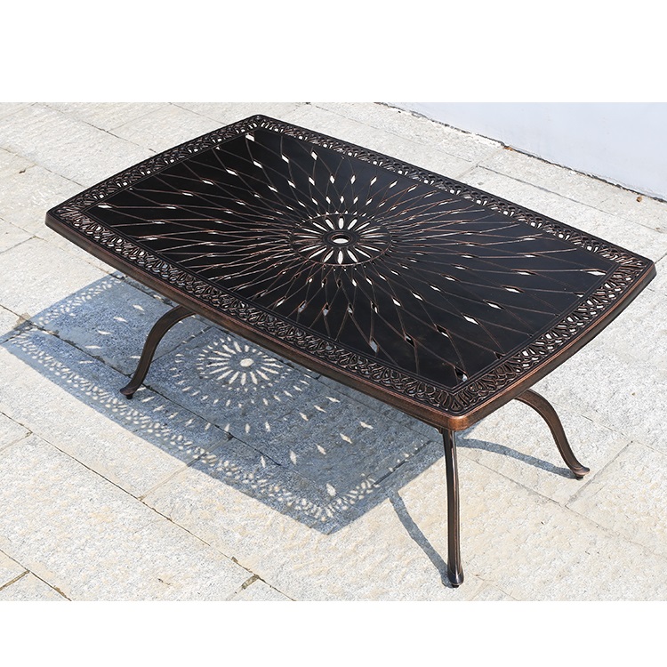 Стол прямоугольный из литого алюминия Адонис Adonis арт.6121 для дачи и сада. Изделие украшено красивым орнаментом. Мебель из литого алюминия не боится перепадов температур, повышенной влажности. Подходит для длительного использования на улице. -