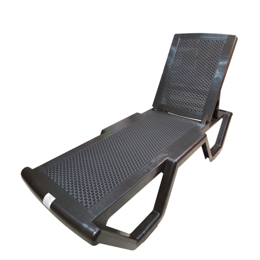 Штабелируемый пластиковый шезлонг с эффектом плетения ротанга.