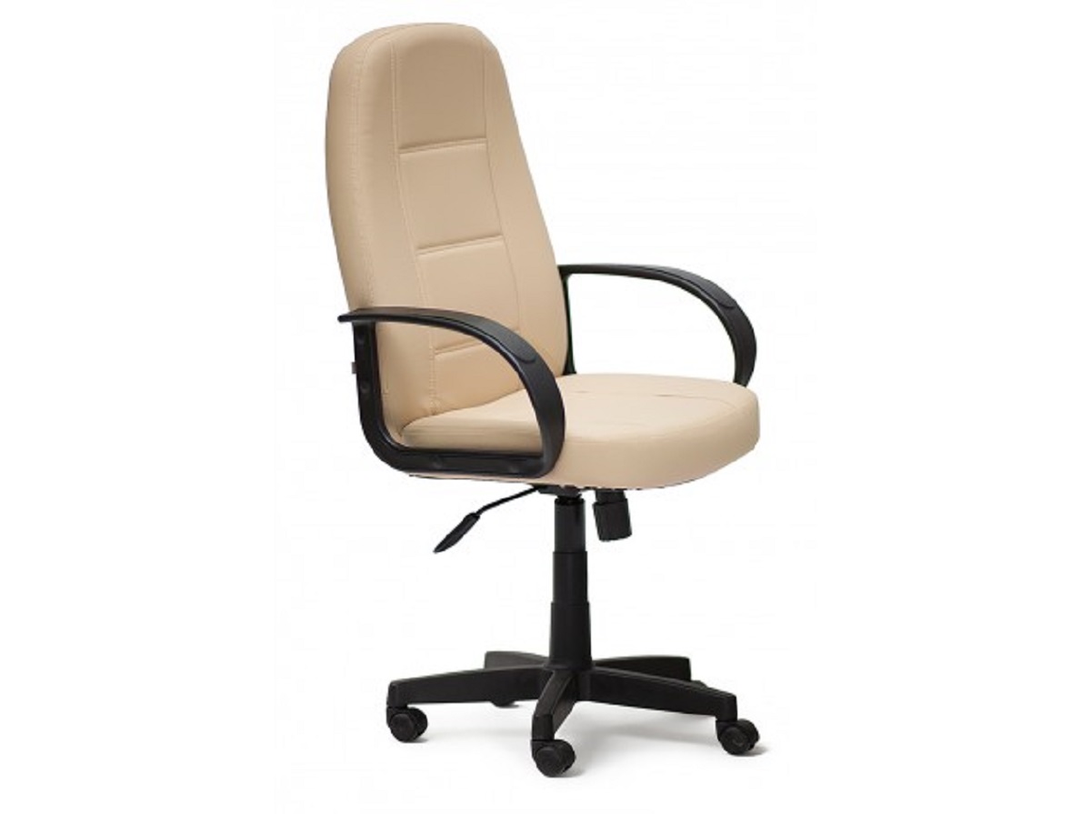 Подлокотники и крестовина изготавливаются из прочного пластика, обивка — искусственная кожа или ткань.