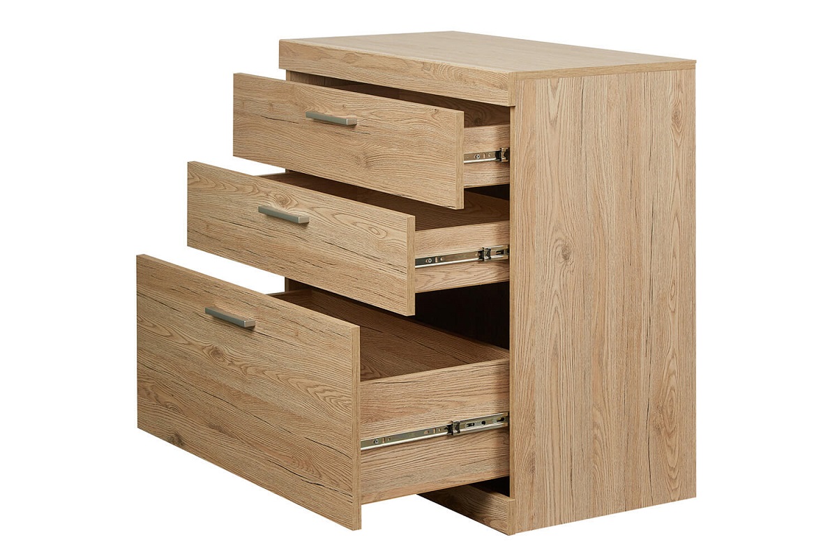 Комод 3S Оскар гармонично будет смотреться в любом интерьере и станет незаменимым элементом. Изделие оснащено тремя выдвижными ящиками, созданными для аккуратного хранения сложенной одежды, постельного и нижнего белья, различных аксессуаров, украшений и косметики. Сверху на комоде можно разместить несколько семейных фотографий, вазу или горшок с цветами, а также разнообразные предметы декора. -