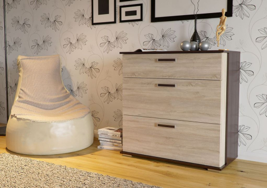 Компактный, но достаточно вместительный комод 4-4425 гармонично впишется в любой интерьер комнаты. Три вместительных выдвижных ящика созданы для хранения одежды и белья, посуды и чайных сервизов, а также для других разнообразных предметов. Сверху на комоде вы сможете разместить семейные фотографии, коллекцию интересных статуэток, красивые цветы в вазе и оригинальные предметы декора.