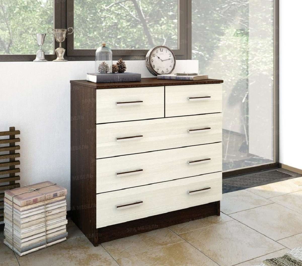 Вместительный Комод 800-3/2 имеет два малых ящика наверху для белья и аксессуаров и три больших, в которых будет удобно хранить одежду и вещи. Модель будет полезной частью интерьера прихожей, спальни, гостиной или детской комнаты. Широкая столешница позволяет поставить небольшой плоский телевизор или использовать ее для необходимых под рукой мелочей. -