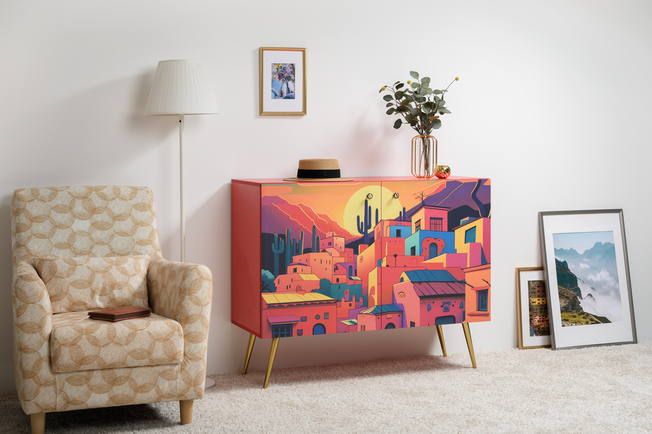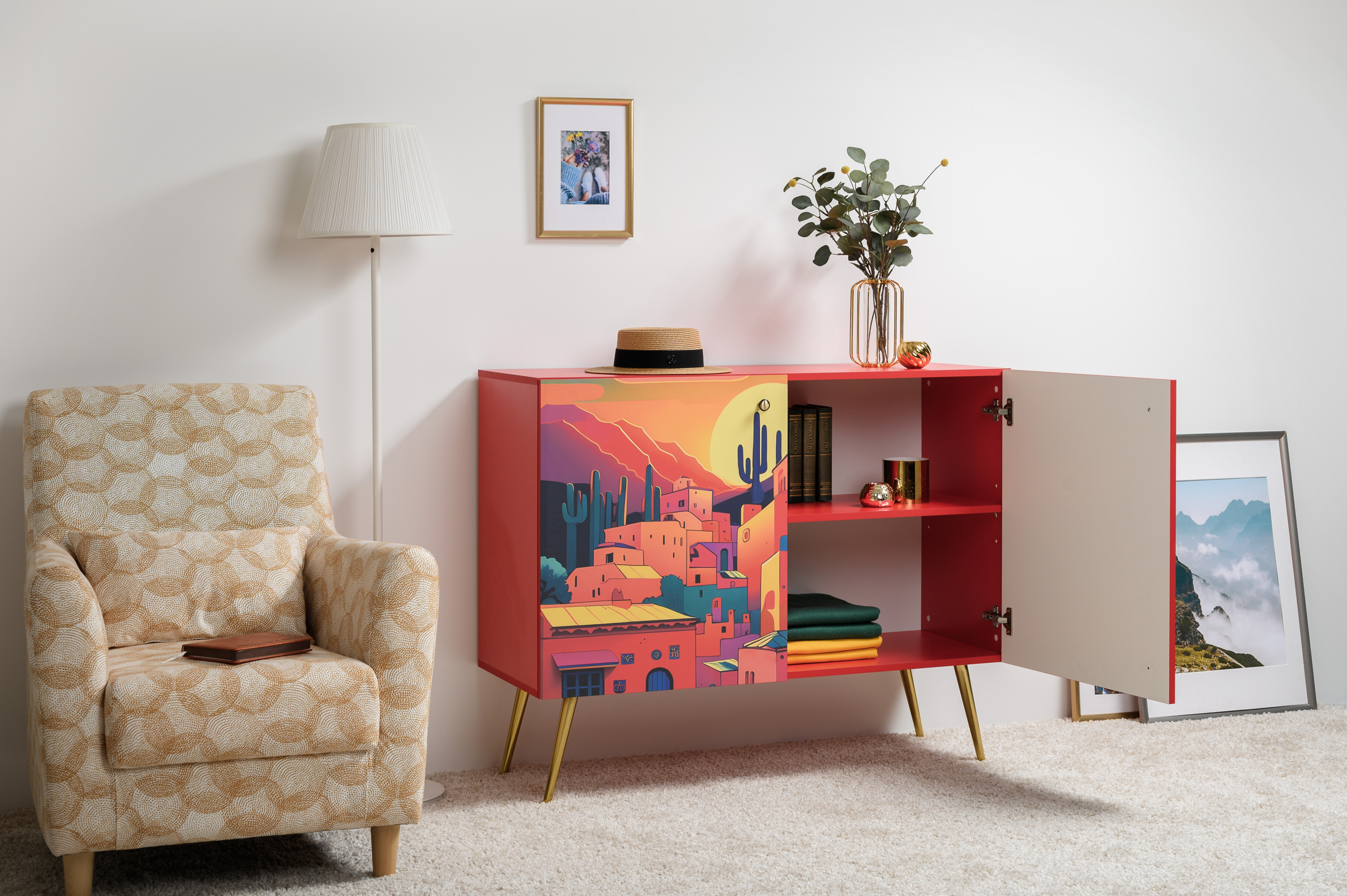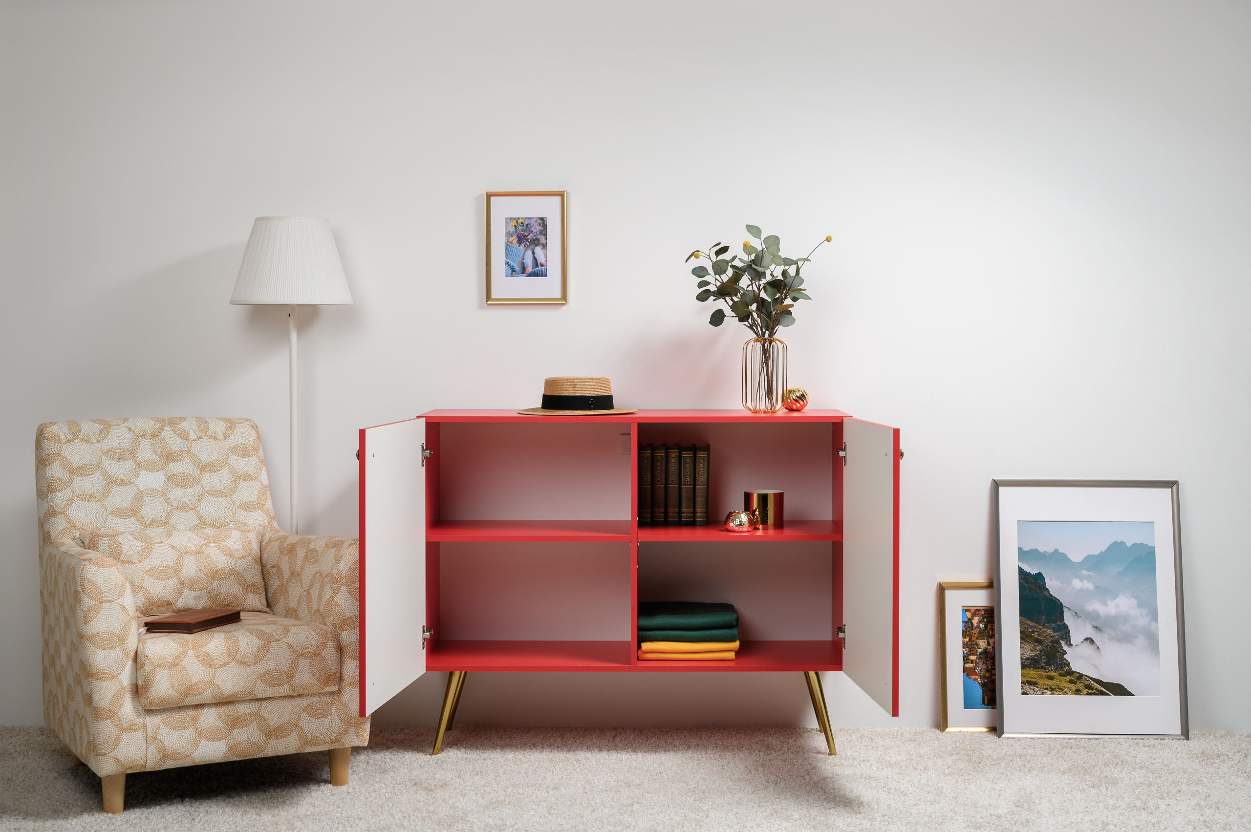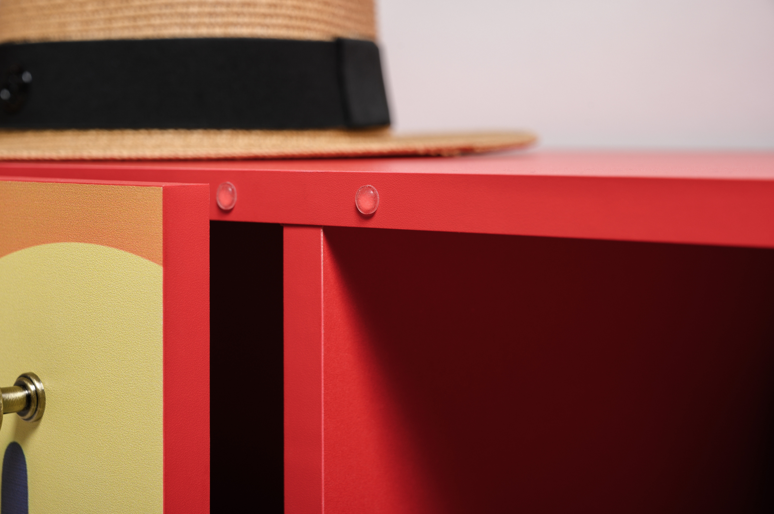 Комод Кармин 16.230.03 стильная модель на высоких, металлических ножках. Яркий, сочный цвет придаёт определённый шарм модели. Высокие ножки позволят с лёгкостью убираться. -