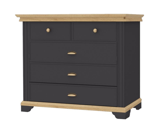 Комод Лиана 1 может стать стильным и уютным элементом интерьера. Древесный цвет добавляет тепла и естественности, в то время как серый графит придаёт современный и элегантный вид. -