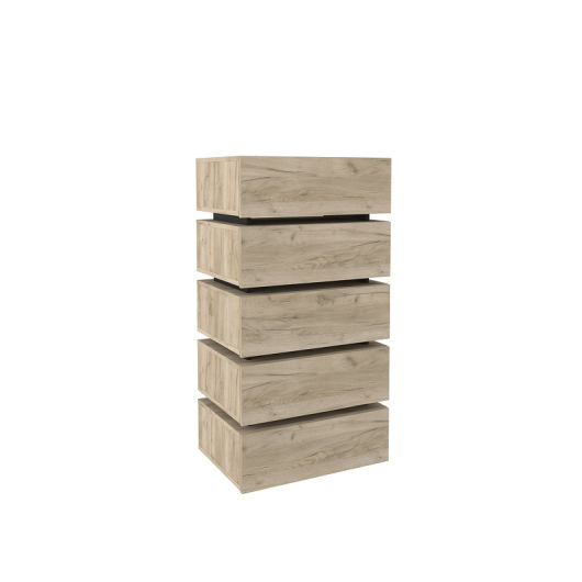 Комод OSLO 6 – практичный и вместительный. Лаконичные гладкие фасады ящиков в декоре Дуб Серый в комбинации с контрастными черными планками делают комод поистине уникальным. Пять выдвижных ящиков глубиной 14 см способны поместить в себя все необходимое, а компактная конструкция сэкономит место в комнате. Все ящики оснащены направляющими полного выдвижения. Такие направляющие делают открывание и закрывание бесшумным. -