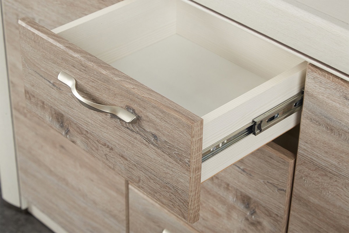 Комод Оливия — это отличное решение для рациональной и удобной организации пространства. Представленная модель идеальным образом сочетает в себе значительную вместительность, современный дизайн и высокое качество изготовления. Нежные пастельные тона корпуса и контрастирующая с ними расцветка фасада, а также точная имитация текстуры древесины придают изделию эффектный и стильный внешний вид. Комод выполнен из безопасных материалов, что позволяет устанавливать его в любом месте квартиры. -
