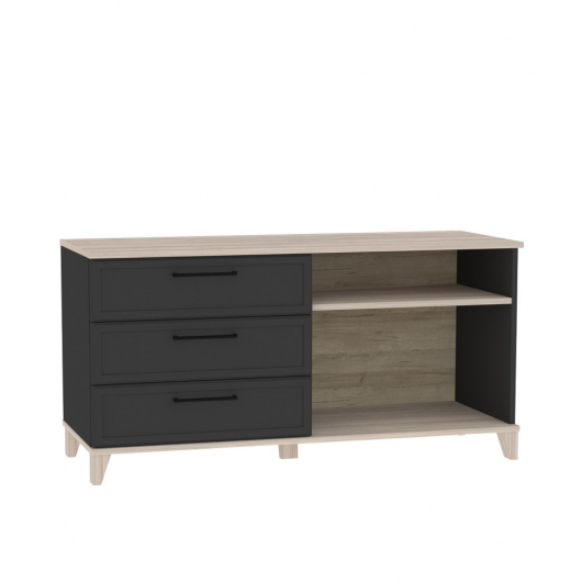 Тумба Aurelio 5 представляет собой классическую мебель в современном исполнении. Корпус мебели изготовлен из высококачественного ЛДСП толщиной 16 мм, что обеспечивает прочность и долговечность конструкции. Фасады выполнены из МДФ с применением профиля, что придает им изысканный и стильный вид. Особое внимание стоит уделить рамочным фасадам шкафов, которые украшены стеклянными вставками и металлическими черными ручками. Это сочетание материалов придает мебели особый шарм и элегантность. -