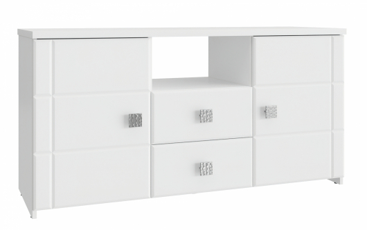 Тумба Изабель ИЗ-53К для ценителей современного дизайна. Благодаря широкой, верхней поверхности с лёгкостью заменит два предмета, комод и тумбу ТВ. Наполнение тумбы: два выдвижных ящиков на телескопических направляющих, ниша для аппаратуры или книг и два закрытых отделения с полками.