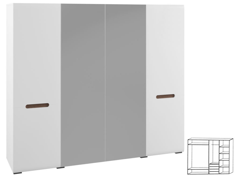 Шкаф 4-х дверный Амбра стильный и функциональный. Необычный дизайн придаст интерьеру особый шарм. Корпус выполнен из ЛДСП, а фасад из МДФ глянец. -