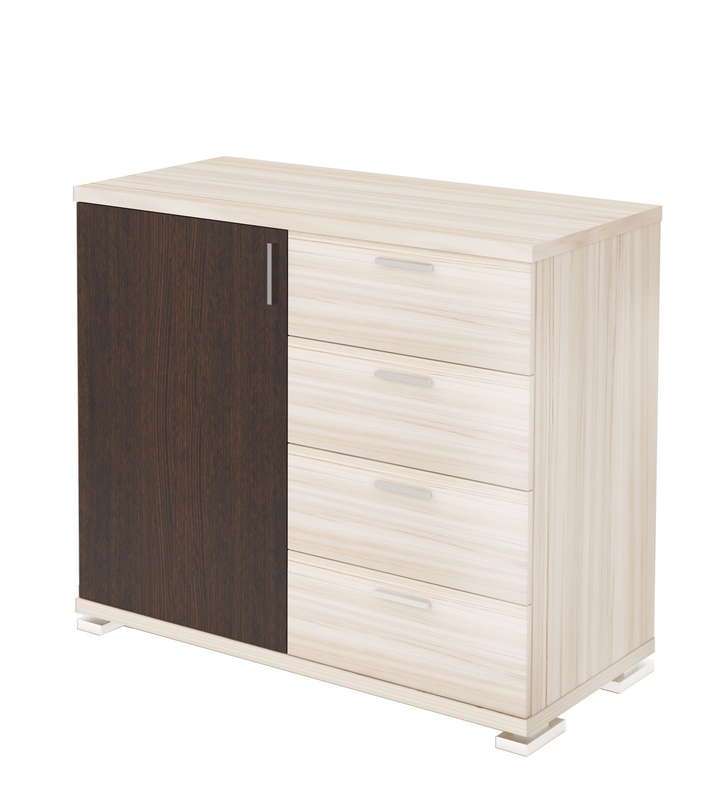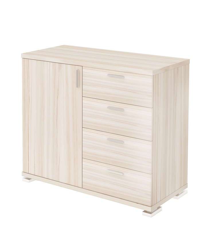 Тумба ТБ-4М станет прекрасным дополнением во время обустройства уютной и функциональной комнаты. Изделие предоставит достаточно места для размещения и хранения различных вещей: одежды и белья, аксессуаров и косметики, документов и книг. Тумба оборудована четырьмя выдвижными ящиками, а за распашной дверцей находятся две полки.