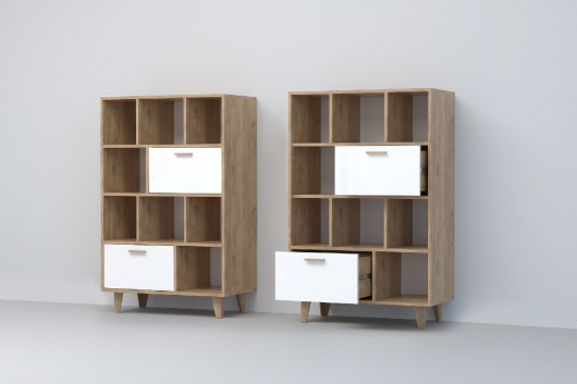 Комод К-1 Эго станет гармоничным дополнением интерьера вашей комнаты. Большое количество открытых полок пригодятся для размещения семейных фотографий, увлекательных книг, статуэток и оригинальных предметов декора. Два выдвижных ящика пригодятся для хранения сложенной одежды, белья, косметики и различных аксессуаров.