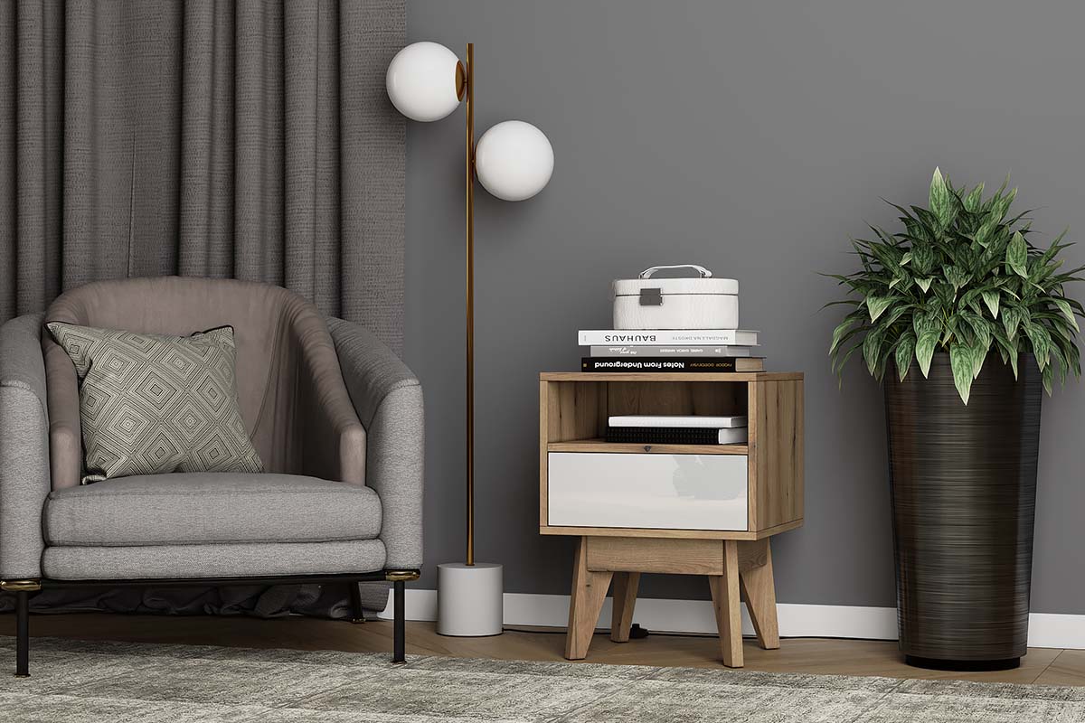 Тумба Хелен 2203.М1 станет элегантным и практичным дополнением самой уютной и гостеприимной комнаты в вашем доме. Изделие можно использовать в качестве придиванной подставки для всевозможных мелочей. Небольшой вместительный выдвижные ящик пригодится для хранения книг и журналов, дисков и различных аксессуаров. Механизм открывания ящика PUSH-UP. Открытая полка предназначена для книг, дисков, фотографий. -