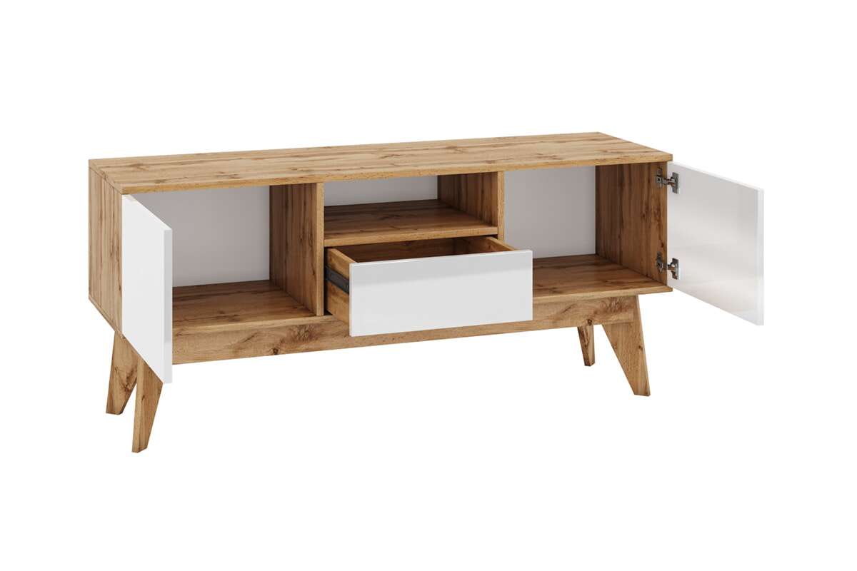 Тумба Хелен 2209.М1 станет элегантным и практичным дополнением самой уютной и гостеприимной комнаты в вашем доме. Изделие можно использовать в качестве подставки под телевизор для комфортного просмотра познавательных телепередач и интересных фильмов. Небольшие вместительные выдвижные ящики пригодится для хранения книг и журналов, дисков и различных аксессуаров. Механизм открывания ящиков PUSH-UP. Открытые полки предназначены для книг, дисков, фотографий. -