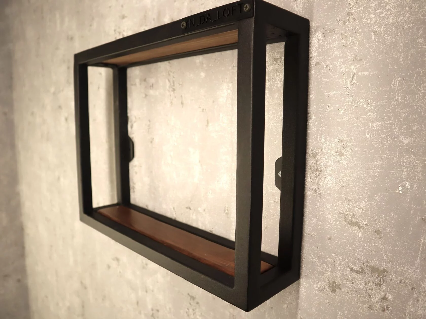 Стильная настенная навесная полка Мини из слэба и стали в стиле Лофт.