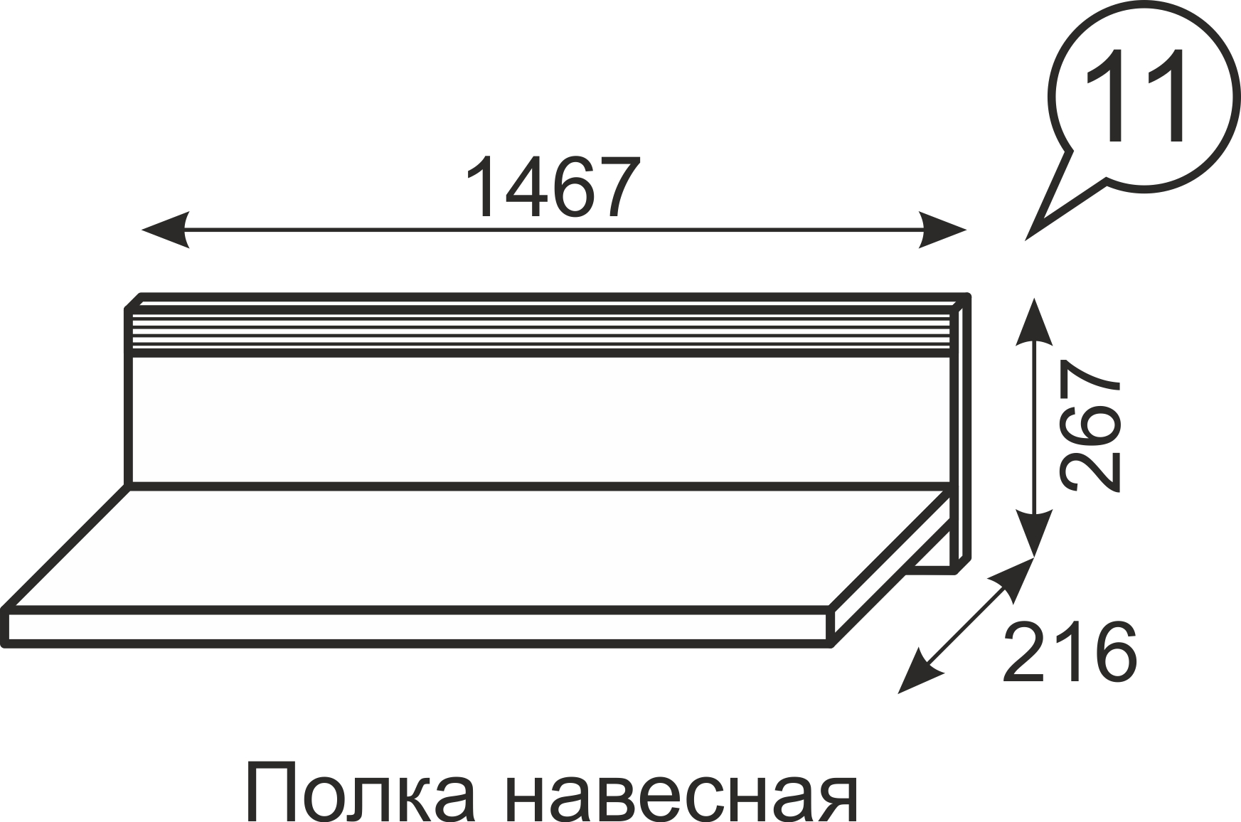 Ширина, мм 1467 Глубина, мм 216 Высота, мм 267 ?МатериалМатериал изготовленияЛДСП Производитель Вариантов исполнения 1 -