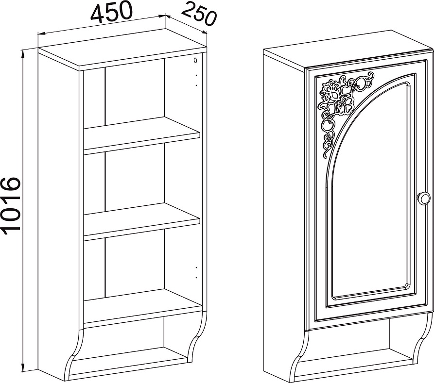 Ширина, мм 450 Глубина, мм 250 Высота, мм 1016 ?МатериалМатериал изготовленияЛДСП, МДФ Производитель Вариантов исполнения 1 -