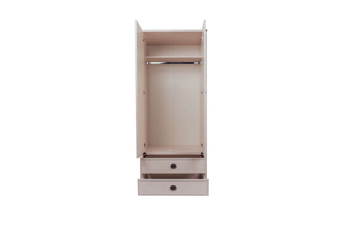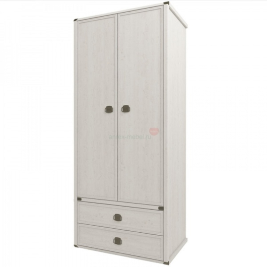 Двустворчатый шкаф Магеллан, получивший свое название в честь знаменитого мореплавателя, придется по вкусу тем, кто остался романтиком в душе. Его дизайн вдохновлен морской тематикой. Винтажные ручки и декоративные уголки делают эту модель похожей на настоящий пиратский сундук с сокровищами. Изделие выполнено из высококачественной ЛДСП в светлом древесном декоре Сосна винтаж. Облицовка торцов меламиновой и ПВХ кромками защищает шкаф от проникновения влаги, а также от возможных повреждений и сколов. Платяное отделение включает антресольную полку и штангу для развешивания одежды на плечиках. Два выдвижных нижних ящика предназначены для хранения постельного белья или игрушек. -