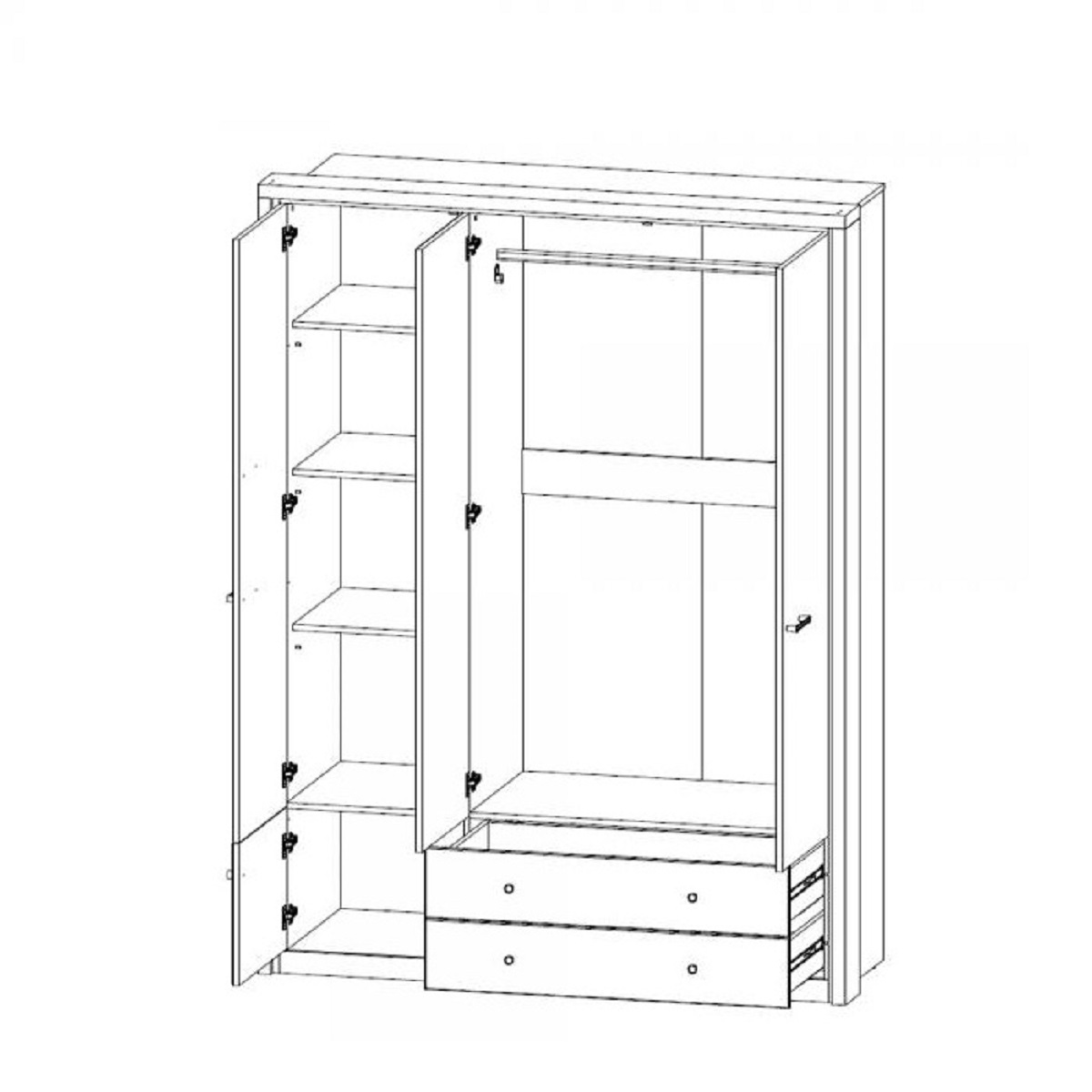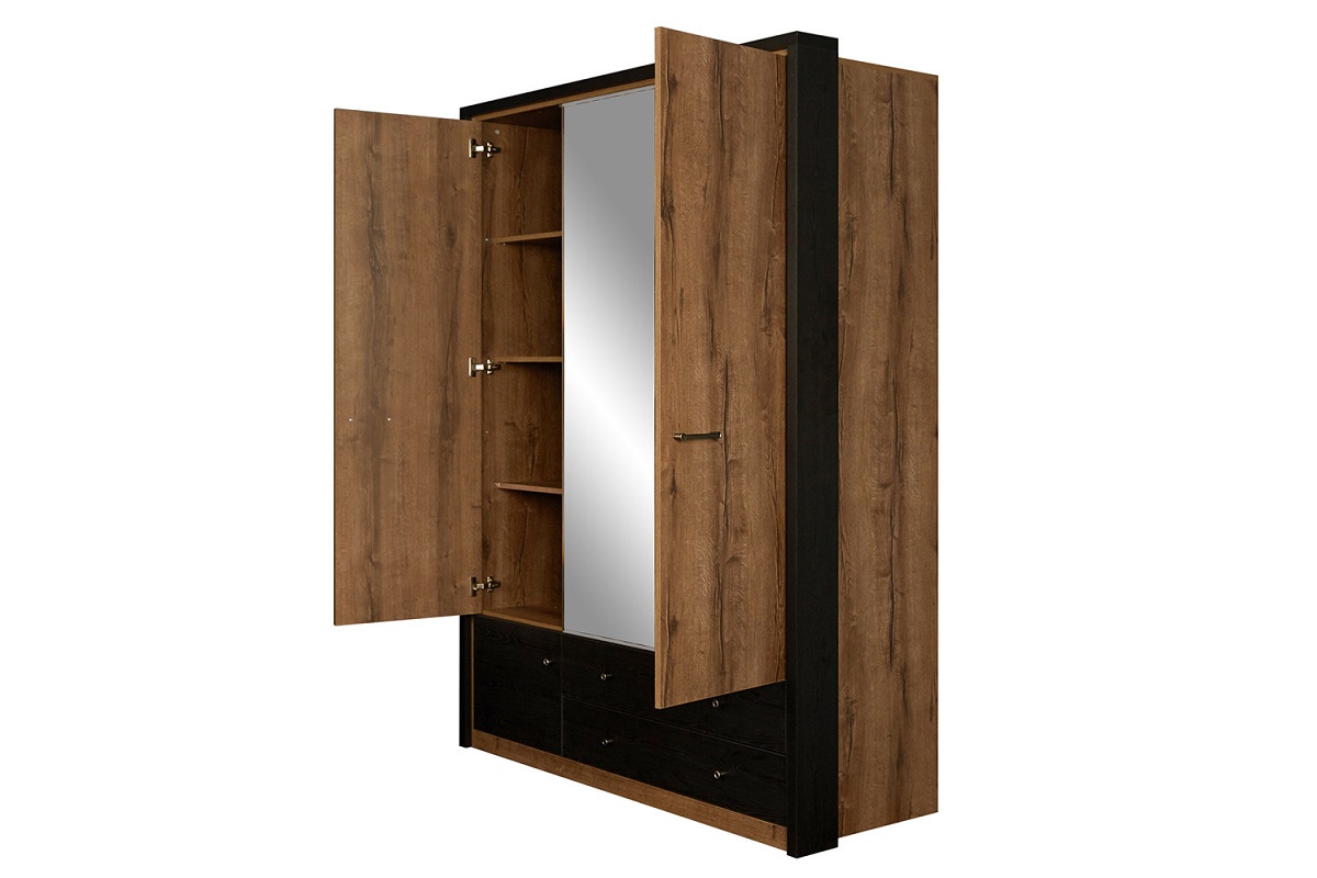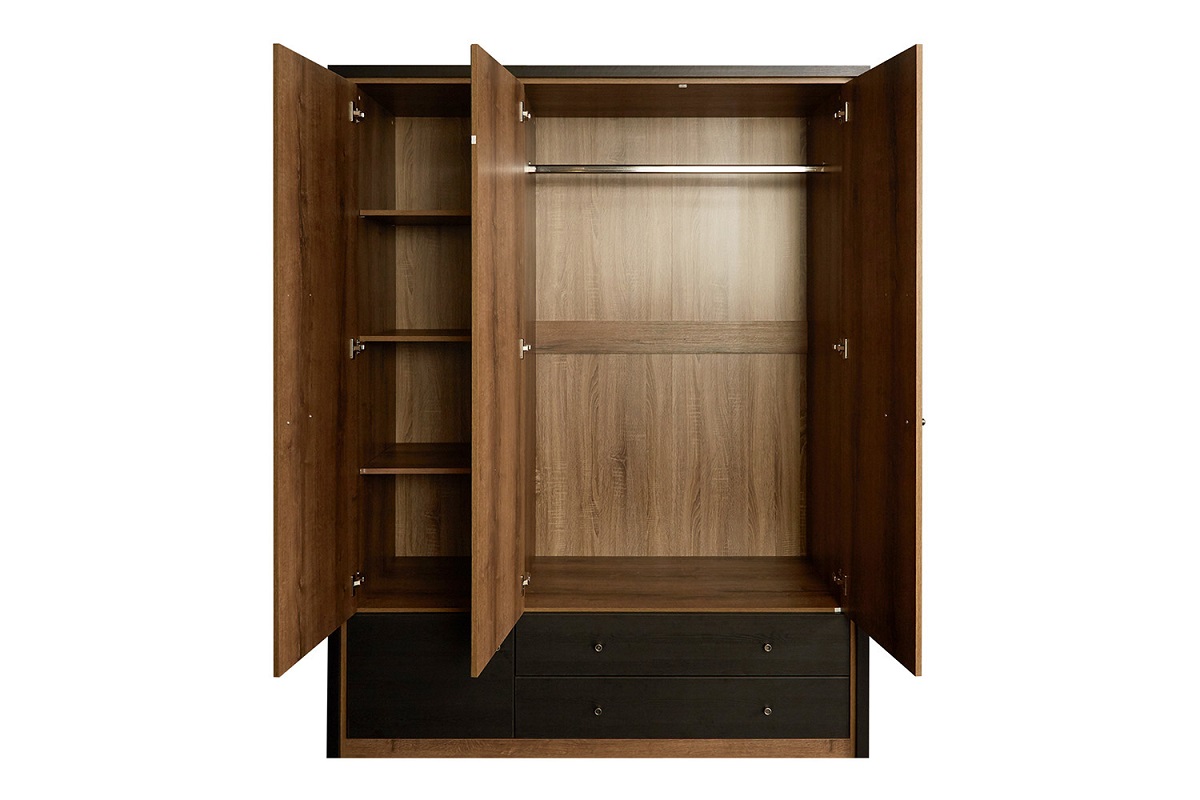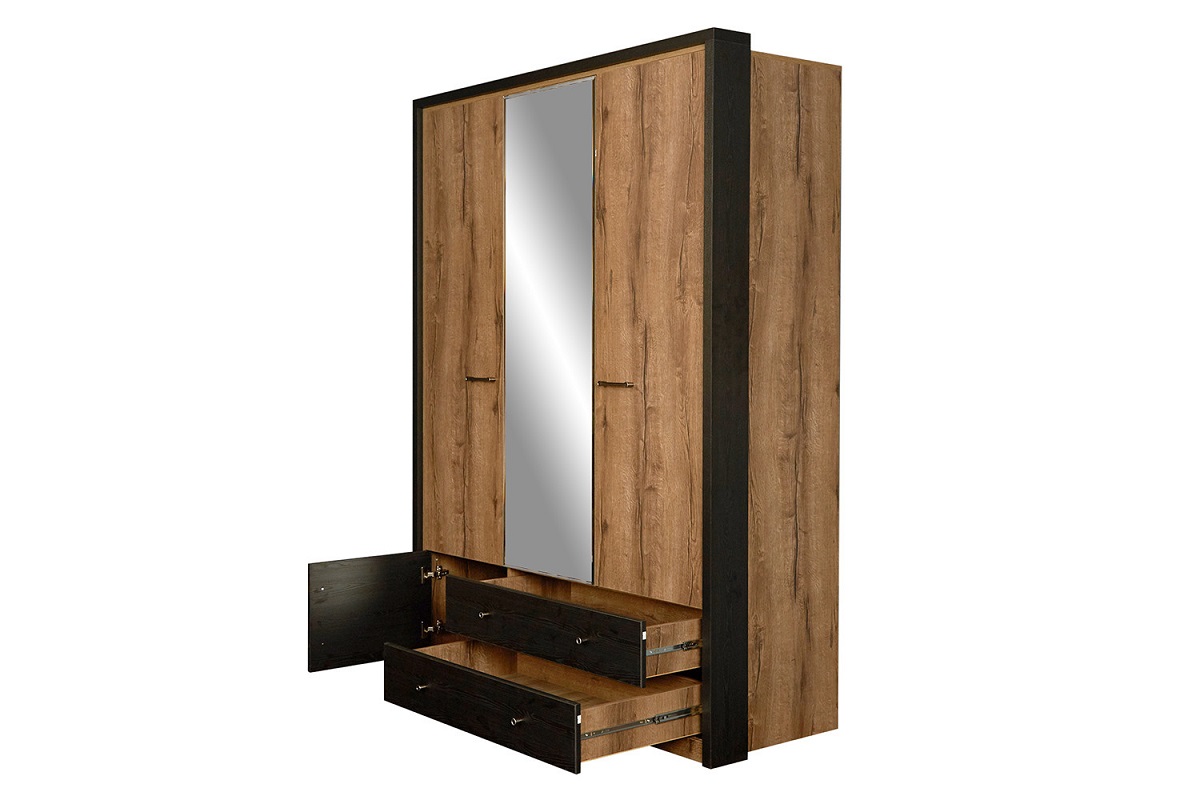 Шкаф 3-х дверный 3DG2S Z Джаггер станет прекрасным дополнением уютной и достаточно комфортной комнаты. Достаточно вместительное пространство внутри создано для бережного хранения Вашего гардероба. За распашными дверьми находится широкая штанга для вешалок-плечиков с верхней одеждой, деловыми костюмами, красивыми платьями, рубашками, блузами и другой безупречно выглаженной одеждой. Полки предназначены для одежды, постельного и нижнего белья, разнообразных аксессуаров и коробок с обувью. Небольшие выдвижные ящики пригодятся для мелких украшений и косметики.