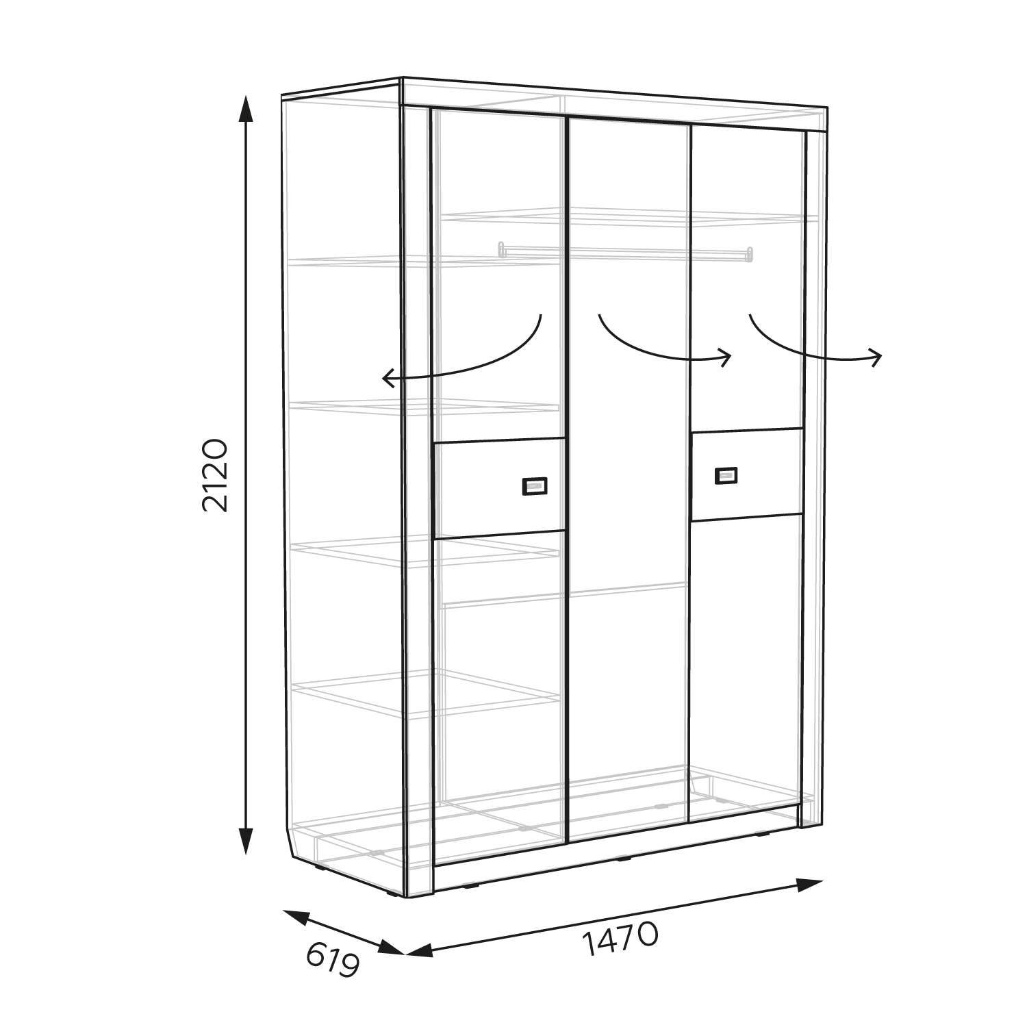 Размеры: Ш1470 х Г619 x В2120 мм.