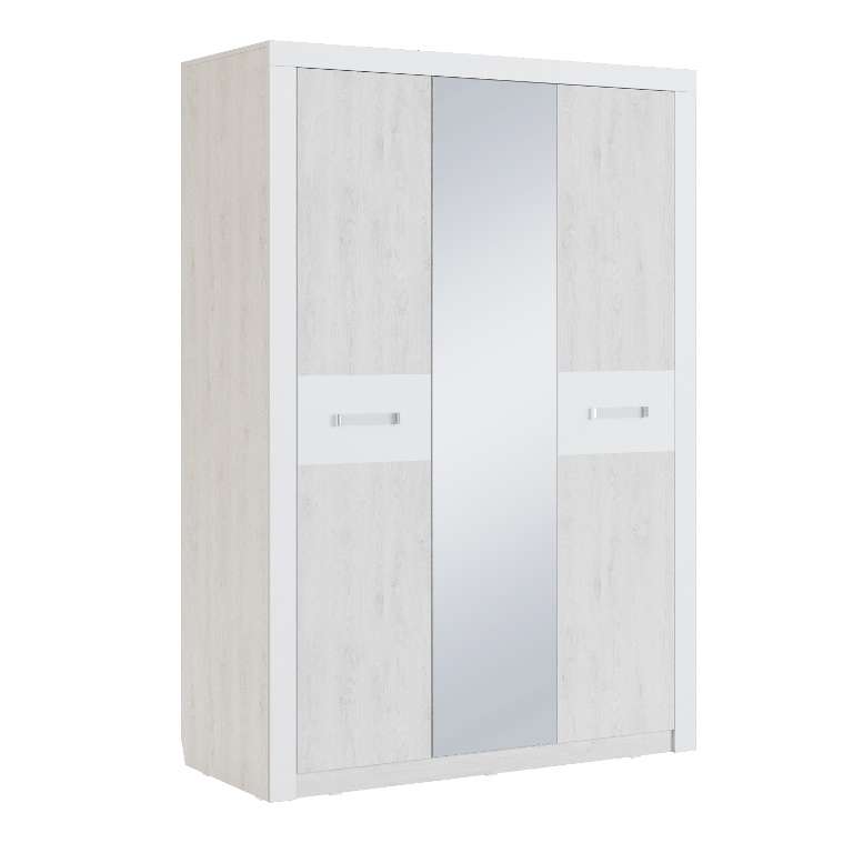 Шкаф трехдверный Амели станет отличным дополнением общего интерьера комнаты, а также поможет создать уютную атмосферу. За двумя распашными дверьми справа находится широкая штанга для вешалок-плечиков. Полки, скрытые в левой части шкафа, пригодятся для размещения сложенной одежды, постельного и нижнего белья, различных аксессуаров и коробок с обувью.