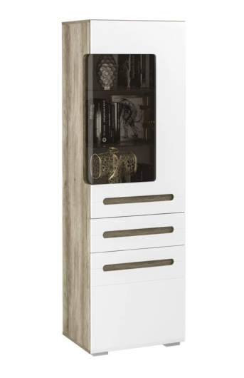 Шкаф Наоми ШК-23 станет безупречным дополнением уютной комнаты. Изделие со стеклянным декором предоставит возможность на видном месте разместить наборы красивой посуды, интересные книги, семейные фотографии, коллекцию оригинальных предметов, различные статуэтки и сувениры. Выдвижной ящик пригодится для аксессуаров и других мелких вещей. -