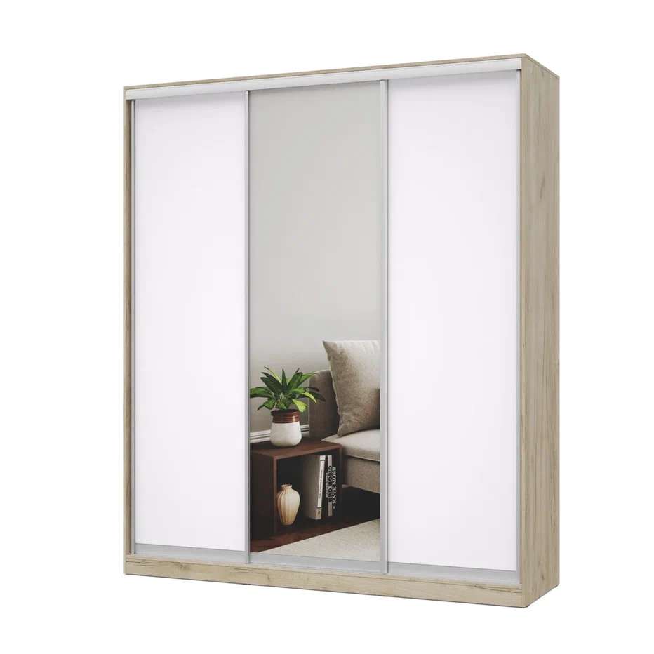 Размеры: Ш2000 х Г590 х В2300 мм Материал: ЛДСП Шкаф-купе Роланд Р202 - оптимальное решение для просторных комнат и больших объемов хранения. Широкий доступ к содержимому благодаря трем отдельным зонам открывания. Фасады с зеркальной поверхностью визуально расширяют пространство, делая комнату светлее и уютнее.
