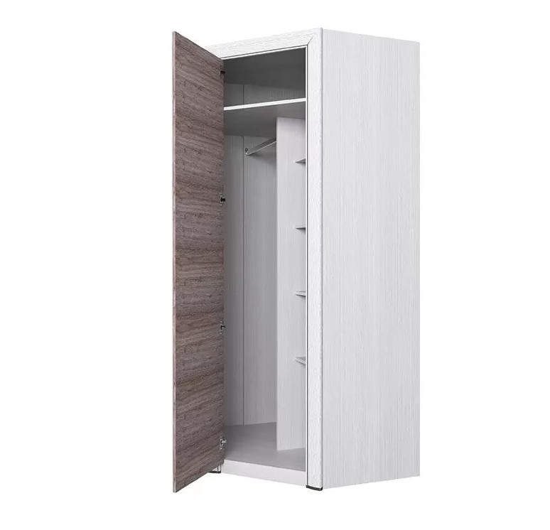 Угловой шкаф из коллекции Оливия позволит максимально полезно использовать пространство гостиной, холла или прихожей. Лаконичная и элегантная форма шкафа прекрасно впишется в современный интерьер. Два контрастирующих цвета отделки будут идеально сочетаться с обстановкой в нейтральном цвете или полутонах, а также с другими элементами коллекции. Изделие не имеет острых углов, дверка оснащена надежной ручкой, размещенной на удобной высоте. Шкаф имеет отделение для плечиков и пять небольших полок, в верхней части шкафа расположена широкая полка для хранения шляп и других вещей, которые должны быть всегда под рукой. -