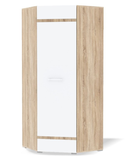 Шкаф угловой Верасль станет настоящей находкой для обустройства уютной детской комнаты. За распашными дверьми находится штанга для вешалок-плечиков с безупречно выглаженной одеждой. Большое количество полок можно использовать для хранения одежды, постельного и нижнего белья, различных аксессуаров и коробок с обувью. Не смотря на компактные размеры, шкаф обладает необычайной вместительностью и предоставит место для всего детского гардероба. -