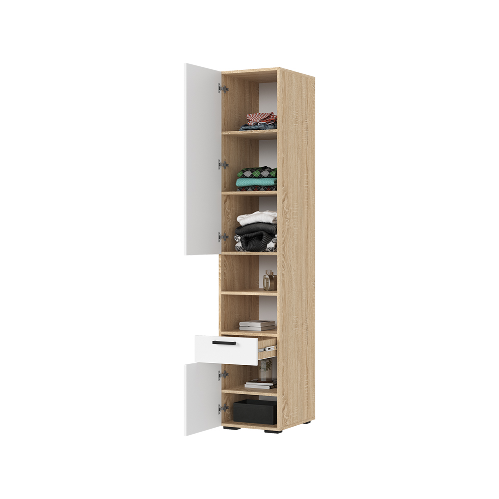 Пенал Санса ПН-01 в сочетании белого и древесного оттенка может стать стильным и гармоничным элементом интерьера. Белый цвет придаёт пространству лёгкость и свежесть, а древесный оттенок добавляет уюта и тепла. Такое решение отлично вписывается в разные стили — от скандинавского до современного минимализма.