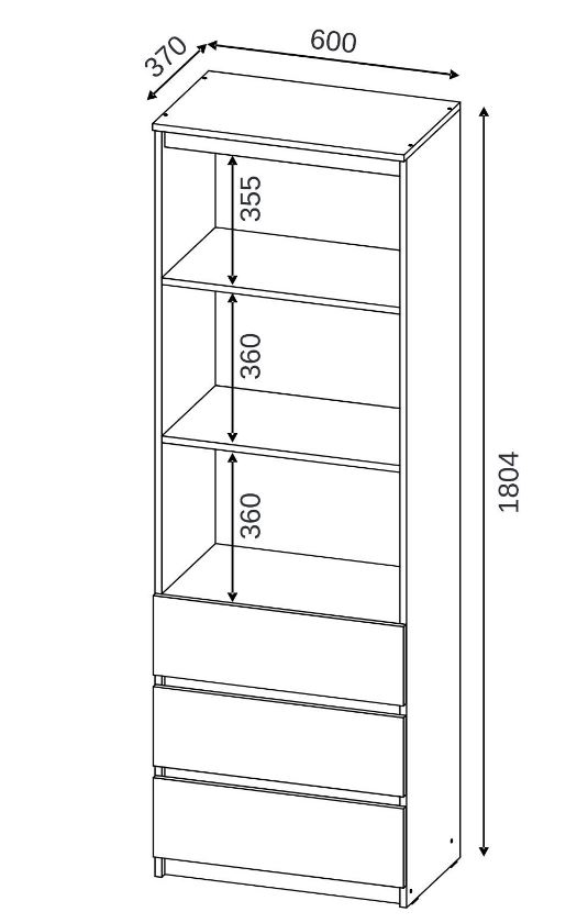 Размеры: Ш600 х Г370 х В1804 мм