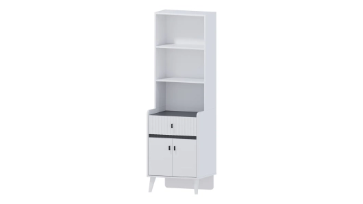 Стеллаж Омега 10 выполнен в белоснежном цвете с глубоким, серым контрастом. Стильный и лаконичный, будет украшением любого интерьера. -