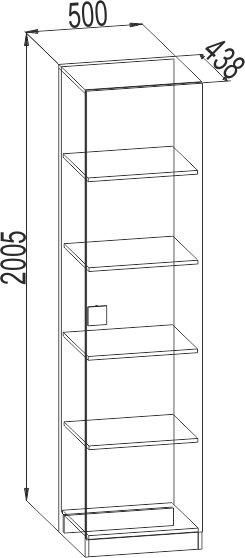 Ширина, мм 500 Глубина, мм 438 Высота, мм 2005 ?МатериалМатериал изготовленияЛДСП, МДФ Производитель Вариантов исполнения 1 -