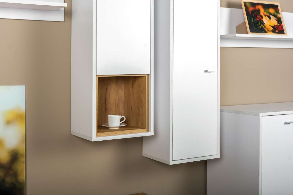 Гостиная Бэль (вариант 3) поможет создать уютную и современную обстановку в вашей гостиной. Теперь у вас будет уютная комната, в которой вы сможете проводить свободное время со своей семьей или друзьями. За распашными дверцами шкафов находятся полки, созданные для бережного хранения различных предметов, в том числе одежды. В открытых нишах и на навесной полке будут гармонично смотреться интересные и увлекательные книги, семейные фотоальбомы, коллекция интересных предметов, оригинальные сувениры, статуэтки, детские поделки и многое другое. Тумбу можно использовать в качестве подставки под телевизор для более комфортного просмотра новостей, сериалов и различных телепередач, а ниши предназначены для необходимой аппаратуры. Полочка навесная используется не только как украшение интерьера красивыми вазочками и семейными фото и декором.