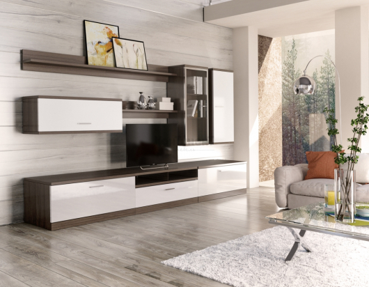 Гостиная Домино 4 обеспечит комфорт и уют в вашей комнате. На полках, скрытых за дверцей со стеклом, будут гармонично смотреться элегантные бокалы, чайные наборы, интересные книги и оригинальные предметы декора. Тумба со специальной полкой помогут разместить телевизор на высоте, подходящей для комфортного просмотра. Две открытые ниши созданы для размещения необходимой аппаратуры. Навесные полки предоставят дополнительное место для аккуратного хранения предметов, которые хочется видеть каждый день. Мебель Домино характеризуют минимализм, модные цветовые решения и функциональность. -