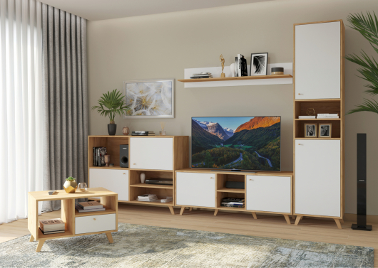 Гостиная Ирма (вариант 2) поможет правильно организовать пространство и создать необычайно уютную и комфортную атмосферу в вашей гостиной. Большое количество полок и ящиков позволят красиво и аккуратно разместить телевизор, необходимую аппаратуру, предметы декора, интересные книги, посуду и фоторамки с семейными фотографиями.