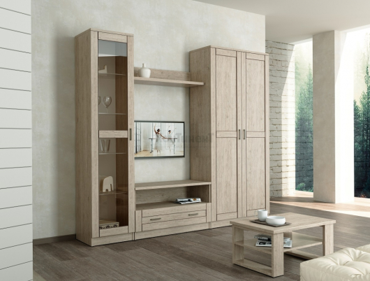 Гостиная Кантри (вариант 3) обеспечит комфорт и уют в вашей комнате. На полках, скрытых за дверью со стеклом, будут гармонично смотреться элегантные бокалы, чайные наборы, интересные книги и оригинальные предметы декора. Тумба ТВ поможет разместить телевизор на высоте, подходящей для комфортного просмотра. Открытая ниша предназначена для необходимой аппаратуры, а вместительный выдвижной ящик пригодится для хранения сложенной одежды и белья, постельных наборов, посуды и скатертей, а также других различных вещей. За распашными дверьми 2-х дверного шкафа находятся две выдвижные штанги для вешалок-плечиков, а антресольная и нижняя полки пригодятся для размещения сложенной одежды и других предметов гардероба. Мебель Кантри создана для тех, кто не любит излишеств и предпочитает простоту и стиль. -