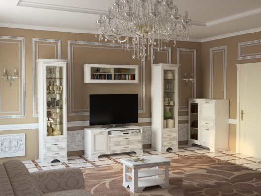 - стол журнальный Каприз - Ш900 х Г610 х В550 мм.Гостиная Каприз (вариант 2) поможет правильно организовать пространство и создать необычайно уютную и комфортную атмосферу в вашей гостиной. За распашными дверьми витрин находятся полки, на которых будут гармонично смотреться наборы посуды, чайные сервизы, семейные фотографии, интересные книги, памятные сувениры, необычные статуэтки и оригинальные предметы декора. Тумба ТВ поможет разместить телевизор на правильной высоте для комфортного просмотра познавательных телепередач и увлекательных фильмов. Открытая ниша предназначена для необходимой аппаратуры, а вместительный выдвижной ящик и отделение с дверцей пригодятся для хранения разнообразных предметов. Вместительные выдвижные ящики и полки, скрытые за распашными дверьми, предназначены для аккуратного хранения одежды, постельного и нижнего белья, различных аксессуаров, украшений и косметики, полотенец и многого другого. Мебель Каприз создана для приверженцев классического стиля и тех, кто хочет создать приятную обстановку в доме.