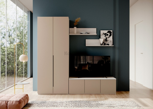 Гостиная Лаунж 5 обеспечит комфорт и уют в вашей комнате. Тумба поможет разместить телевизор на высоте, подходящей для комфортного просмотра. Три выдвижных ящика и широкие полки, скрытые за распашными дверьми шкафа, пригодятся для хранения сложенной одежды и белья, постельных наборов, посуды и скатертей, а также других различных вещей. На навесных полках будут выигрышно смотреться семейные фотографии, интересные книги, небольшой вазон с цветком и оригинальные предметы декора. Мебель Лаунж создана для тех, кому по душе тренд "ничего лишнего". -