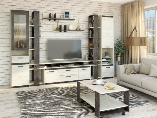 - стол журнальный Прага - Ш1000 x Г600 х В405 мм.Гостиная Прага (вариант 2) поможет правильно организовать пространство и создать необычайно уютную и комфортную атмосферу в вашей гостиной. Большое количество полок и ящиков позволят красиво и аккуратно разместить телевизор, необходимую аппаратуру, предметы декора, интересные книги, посуду и фоторамки с семейными фотографиями. Журнальный столик позволит устраивать чайные церемонии, разместившись на диване или в уютном кресле. Мебель Прага актуальна и универсальна благодаря прямым и строгим линиям, трендовому дизайну модулей.
