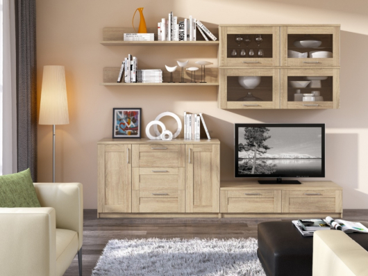 Гостиная Сэндай 1 обеспечит комфорт и уют в вашей комнате. Тумба ТВ поможет разместить телевизор на высоте, подходящей для комфортного просмотра. Выдвижные ящики и полки, скрытые за распашными дверками комода, пригодятся для хранения сложенной одежды и белья, постельных наборов, посуды и скатертей, а также других различных вещей. Навесные полки и шкафы предоставят дополнительное место для аккуратного хранения предметов, которые хочется видеть каждый день. Мебель Сэндай отличается эксклюзивным рамочным профилем.