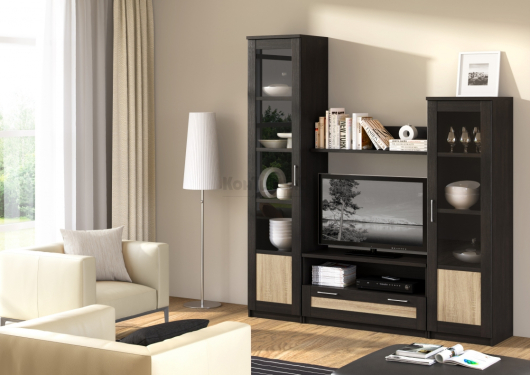 Гостиная Сэндай 2 обеспечит комфорт и уют в вашей комнате. На полках, скрытых за дверьми со стеклами, будут гармонично смотреться элегантные бокалы, чайные наборы, интересные книги и оригинальные предметы декора. Тумба ТВ поможет разместить телевизор на высоте, подходящей для комфортного просмотра. Открытая ниша предназначена для необходимой аппаратуры, а вместительный выдвижной ящик пригодится для хранения сложенной одежды и белья, постельных наборов, посуды и скатертей, а также других различных вещей. Мебель Сэндай отличается эксклюзивным рамочным профилем.