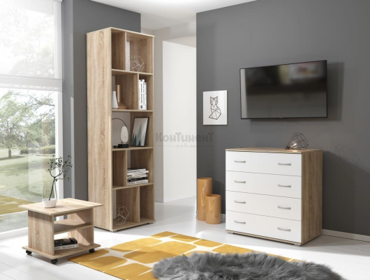 Гостиная Сити 4 обеспечит комфорт и уют в вашей комнате. Четыре выдвижных ящика комода пригодятся для хранения сложенной одежды и белья, постельных наборов, посуды и скатертей, а также других различных вещей. Стеллаж предоставит дополнительное место для аккуратного хранения предметов, которые хочется видеть каждый день. На открытых полках вы сможете разместить интересные книги, оригинальные сувениры, хрустальные изделия и семейные фотографии. Мебель Сити создана для быстрых, динамичных и современных.