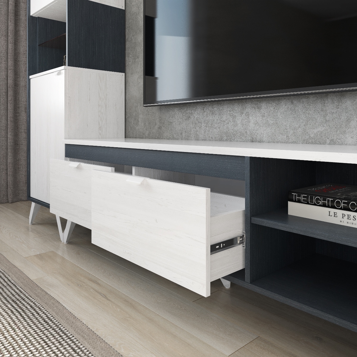 - тумба ТВ Винтер мод.1 - Ш1800 х Г380 x В525 мм.Гостиная Винтер поможет правильно организовать пространство и создать необычайно уютную и комфортную атмосферу в вашей гостиной. Большое количество полок и ящиков позволят красиво и аккуратно разместить телевизор, необходимую аппаратуру, предметы декора, интересные книги, посуду и фоторамки с семейными фотографиями.