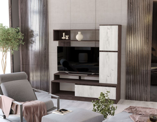 Гостиная Милана №1 в сочетании тёмного и светлого цветов может создать уютную и стильную атмосферу. Стенка Милана 1 имеет очень функциональное наполнение. -
