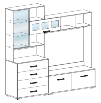 Стильная и компактная центральная секция Яна порадует Вас своей функциональностью и интересным сочетанием расцветки. Индивидуальность придают оригинальные зеркальные вставки на дверцах. Подойдет для установки телевизора, имеет открытые ниши для фотографий и сувениров, закрытые полки и выдвижные ящики для хранения вещей. Секция может компоноваться шкафом модульной гостиной Яна. -